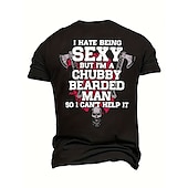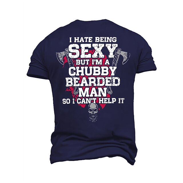 Highlights [Fabric:] Crafted from 100% high-quality cotton, this T-shirt offers a soft and comfortable fit with micro-elasticity, ensuring it remains breathable and easy to wear throughout the summer season. [Fit:] This T-shirt features a regular fit, providing both comfort and style. It offers ease of movement, making it suitable for various activities, whether you're out and about or relaxing at home. [Design Highlights:] The T-shirt showcases a bold and humorous graphic print on the back. The playful white and red text, I HATE BEING SEXY BUT I'M A CHUBBY BEARDED MAN SO I CAN'T HELP IT, is complemented by edgy graphic elements like axes and a skull, all printed on a classic crew neck design with short sleeves. [Occasions:] Ideal for sports, outdoor activities, holidays, and casual outings. Whether you're spending a day outdoors or lounging at home, this versatile T-shirt fits a variety of occasions, maintaining a casual yet fashionable appeal. [Sizes Available:] This T-shirt is available in a range of sizes, including S, M, L, XL, and XXL, catering to adult men looking for comfort and style. Perfect for everyday use. premium materials and excellent craftsmanship ensure long-lasting durability.