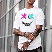 Why Choose Men's Edgy X-Eye Smiley Face Splatter Graphic Short Sleeve Loose Fit Crew Neck T-Shirt?