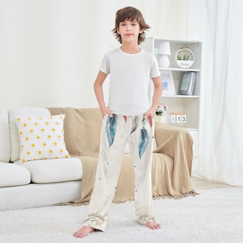 ZZXXB Dream Catcher and Feather Print Boys Long Pants silky Trousers Elastic Waist Kids Lounge Bottoms with Pockets S-XL