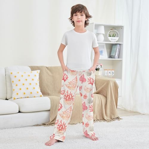 Boys' Pants Coral Seashell Light Pink Long Bottoms Jogger Pants Elastic Waist Trousers with Pockets S-XL