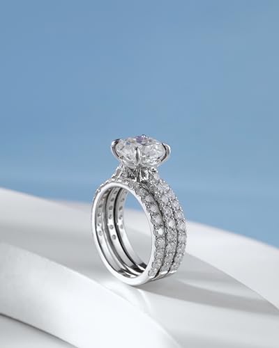 trending ! Moissanite Wedding Rings Bridal Set Total 3.8-4.74cttw 3CT Center Round Oval Cut Sterling Silver D Color Wedding Ring Set