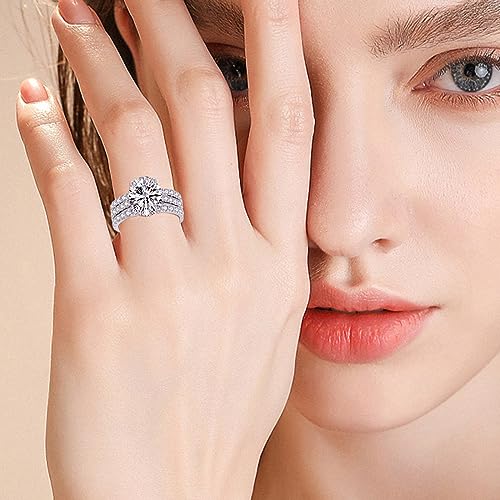 • Design: Three-piece bridal ring, an engagement ring with 2 carats center Moissanite, and two easy but shiny wedding ring decorated with many exquisite Moissanite. This bridal set can be worn separately or together.This bridal set is is shining and moving, showing the charm and nobility of women.
