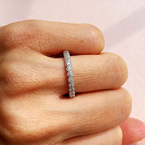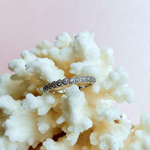 trending ! 925 Sterling Silver 2.5mm Milgrain Wedding Band Vintage Stacking Round Bridal Half Eternity Ring
