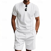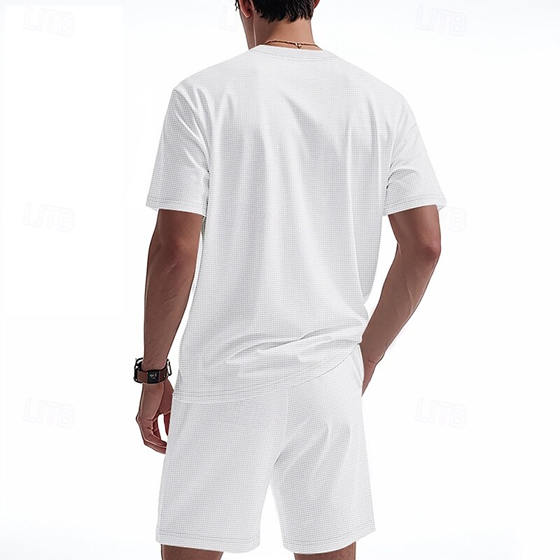 This Men's Waffle Shirt T-shirt Suits 2 Pieces Outfits Tee & Shorts Short Sleeve Crew Neck Summer Spring Plain Fashion Casual 2 Piece Vacation Daily Wear Going out Black White Royal Blue Top Tee for Men combines elegant design with practical functionality. Every detail has been carefully considered to ensure you get the premier possible experience. The supreme construction means this product will serve you well for years to come.