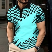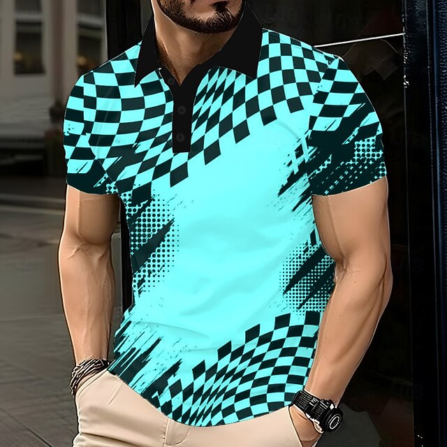 trending ! Men's Abstract Geometic Polo Short Sleeve Polo Shirts Lapel Business Casual Business Athleisure 3D Print Buttons Summer Lake blue White Yellow
