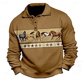 trending ! Men's Graphic Horse Polo Long Sleeve Polo Shirts Collared Shirts Casual National Style Athleisure Daily Wear 3D Print Spring Fall Winter Dark Brown