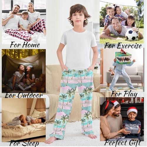 visesunny Boys' Pants Pink Summer Beach Jogger Pants Elastic Waist Long Bottoms Trousers with Pockets
