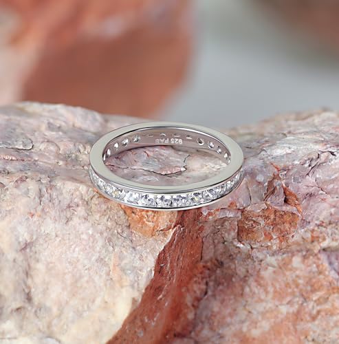 Hoops & Loops 2mm 925 Sterling Silver Wedding Band Round Cubic Zirconia Channel Set Full Eternity Stackable Engagement Anniversary Ring for Women Size 5-10