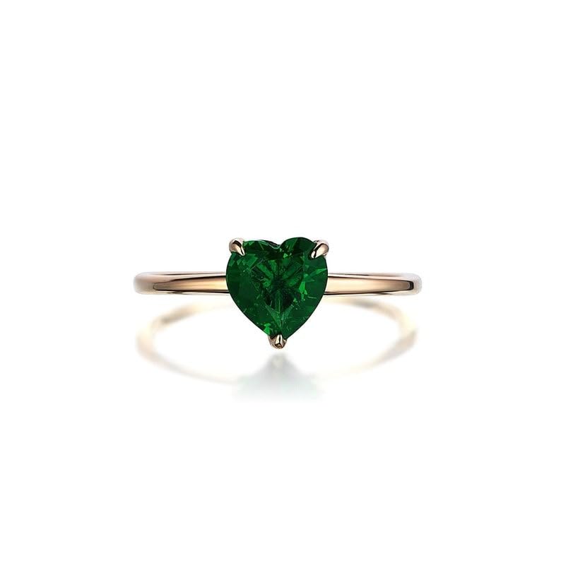 Emerald Ring Gold Plated Engagement Rings for Women Green Emerald Wedding Band Promise Rings for Her Stackable Wedding Band