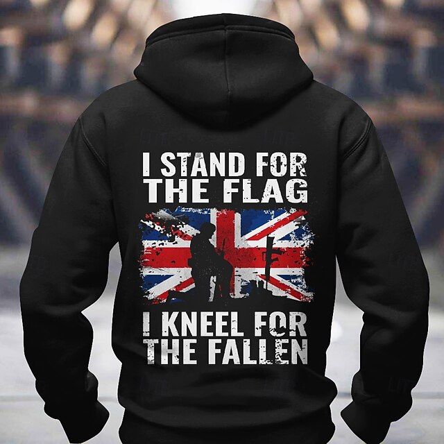 trending ! Men's Patriotic British Flag Hoodie | 'I Stand For The Flag I Kneel For The Fallen' Soldier Remembrance Graphic Hooded Sweatshirt