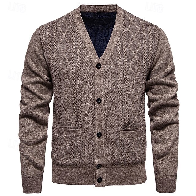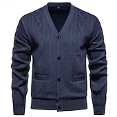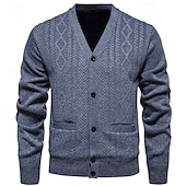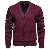 More information about Men's Sweater Cardigan Sweater Ribbed Knit Regular Tops Knitted Plain V Neck Vacation Fashion Casual Daily Wear Clothing Apparel Spring & Fall Burgundy Light Grey L XL 2XL