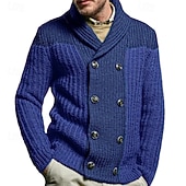trending ! Men's Cardigan Sweater Cropped Sweater Knit Sweater Ribbed Knit Regular Tops Button Up Plain Lapel Fashion timeless Vacation Daily Wear Clothing Apparel Fall Winter Blue M L XL