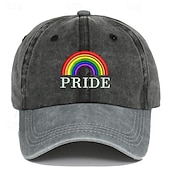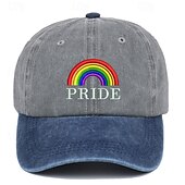 The cap stands out with its vibrant rainbow embroidery on the front, symbolizing inclusivity and support. The bold "PRIDE" text beneath the rainbow adds a meaningful statement. Its color block design, showcasing a black, red, gray, and coffee palette, adds a up-to-date touch to this timeless accessory.