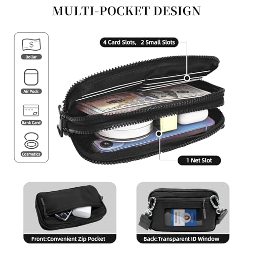 • 【Versatile Carry Styles】The wristlet purse has two straps, one 9.8" comfort-fit wristband can be used as a wristlet wallet, clutch, stays comfort for each-day wear during workouts, errands. And one 32" to 56" adjustable strap can be used as sling bag, cross body bag, chest bag and shoulder bag, make your hands gratis easily. Thanks to the adjustable and detachable straps,it easily adapts to your outfit and occasion