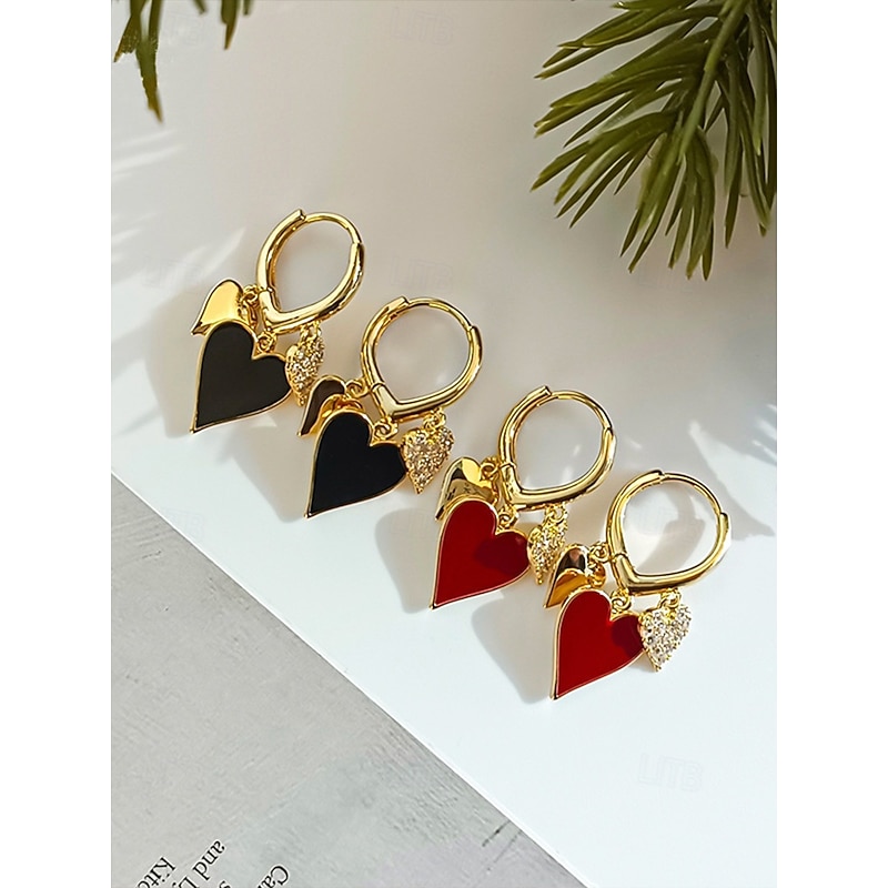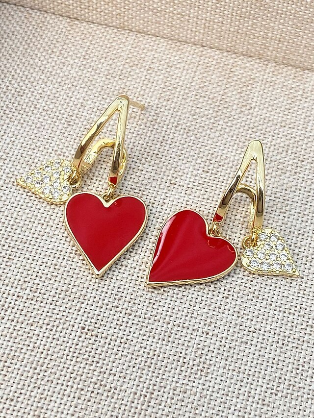 $7.99 - Red and Gold Heart Drop Earrings with Rhinestone Detailing – Romantic Jewelry for Women, Perfect for Valentine's Day or Date Nights 2025. Shop for cheap Women's Earring online? Buy at lightinthebox.com on sale today!