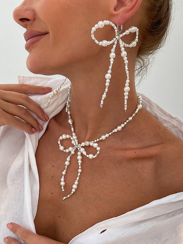 $11.99 - Women's Pearl Bow Necklace and Drop Earrings Set - Elegant Statement Jewelry for Fashion Parties and Cocktail Events 2025. Shop for cheap Women's Necklace online? Buy at lightinthebox.com on sale today!