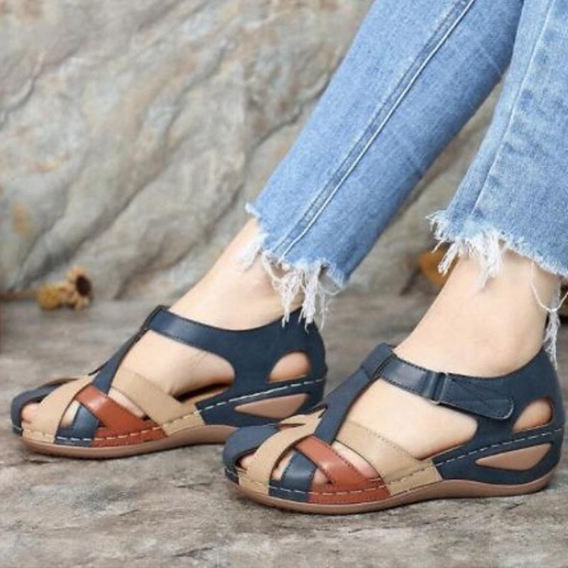 Highlights [Fabric and Materials] : These women's wedge sandals are crafted from a blend of PU leather and faux leather, providing a fashionable and durable option for summer footwear. The materials offer a comfortable feel for all-day wear, while maintaining a sleek appearance. [Shape and Style] : Designed with a classic and casual wedge heel, these sandals feature a round toe and closed-toe construction. The cross-strap design not only adds aesthetic appeal but also ensures a secure and supportive fit. The moderate heel height of 1-2 inches ensures easy walking and all-day comfort. [Design Highlights] : The sandals boast a modern color block pattern that catches the eye. The adjustable buckle strap allows for a personalized fit, ensuring comfort no matter the occasion. The outsole is made of rubber, offering reliable traction and stability. [Occasions] : Perfect for a variety of settings, these sandals are ideal for daily wear, outdoor activities, beach outings, office days, and casual walks. Their versatile style and vibrant color options make them a suitable choice for any summer event. [Size Range] : These sandals are available in a wide range of sizes, accommodating from size 35 to 43. This extensive size range ensures a comfortable and tailored fit for different foot sizes, making them a great option for finding the perfect walking companion. Perfect for everyday use. premium materials and excellent craftsmanship ensure long-lasting durability.