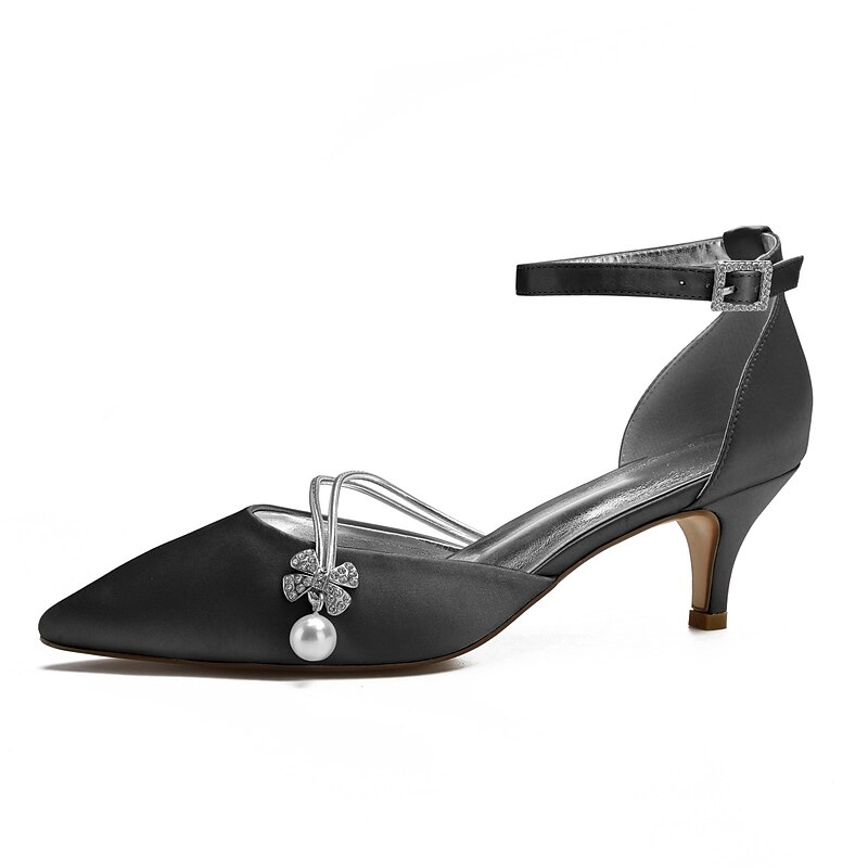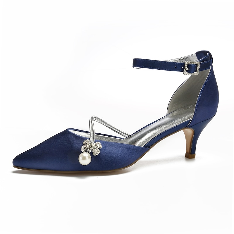 More information about Women's Dark Blue Satin Kitten Heels with Pearl and Rhinestone Charm – Chic Cocktail Party Shoes for Elegant Evenings and Formal Events