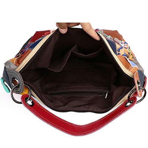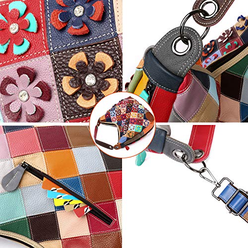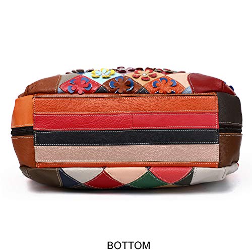 • 🌸🌼🌸 snug Note: This handbag spliced by random colorful leather flowers, each one are different, the product you receive may differ slightly from the product displayed in the picture,but every bag is gorgeous and one-of-a-kind just for you. The bag is patched by Cowhide, so the grain of every piece of leather may show different, we promise it's truly genuine leather!