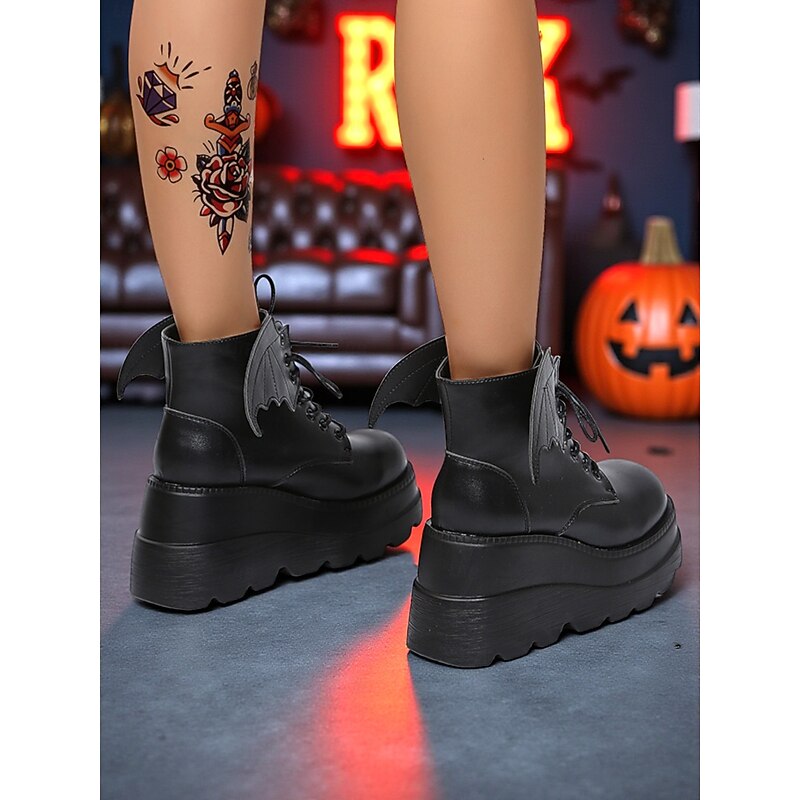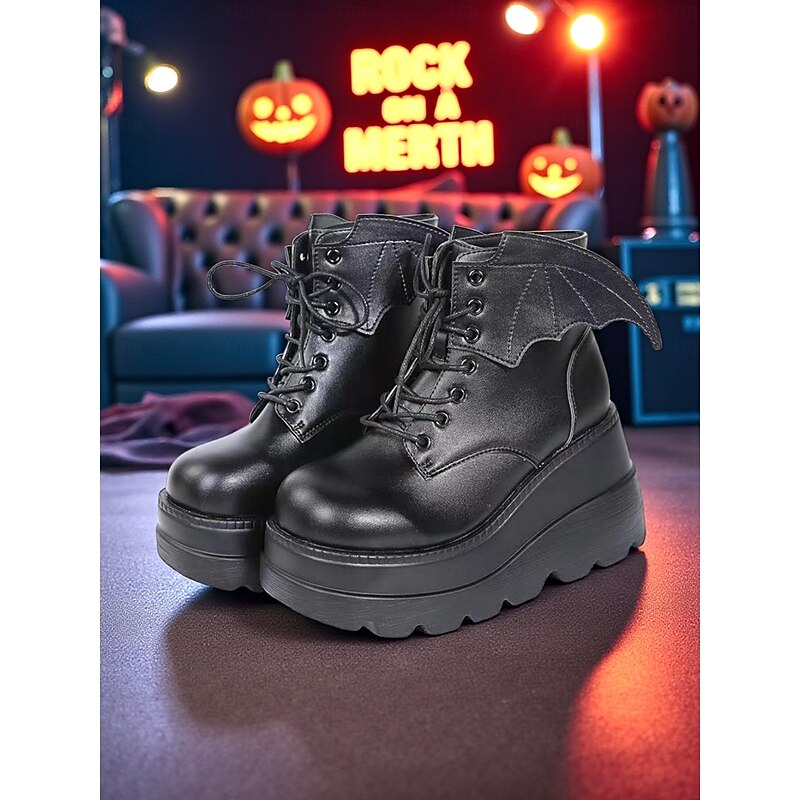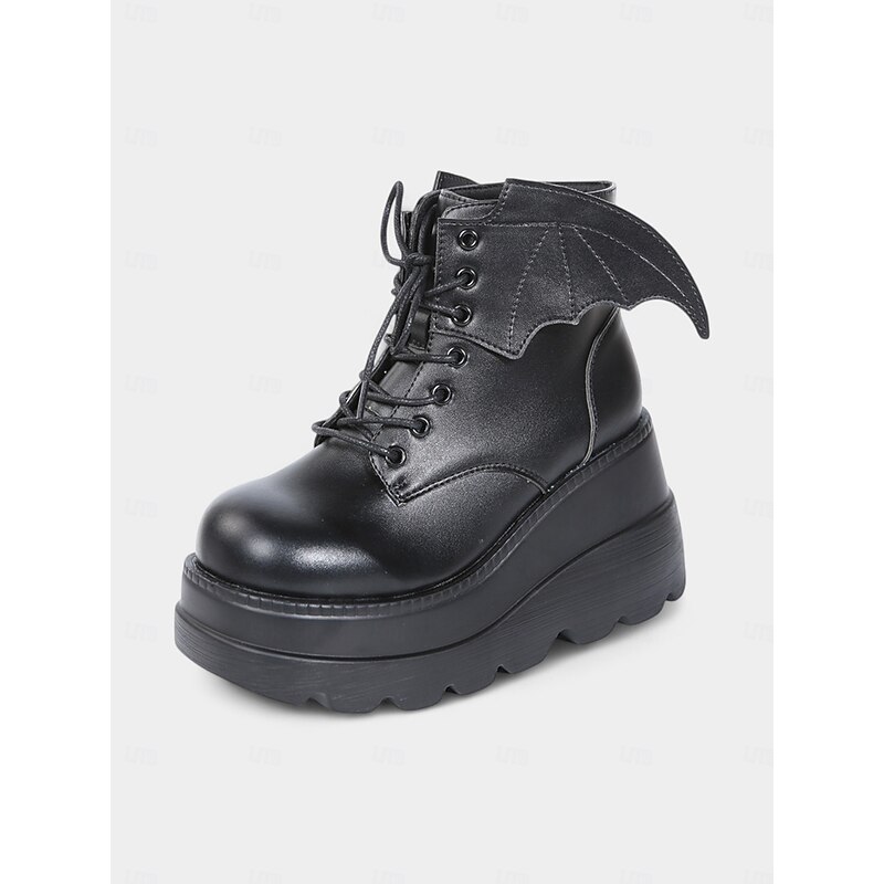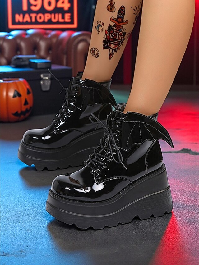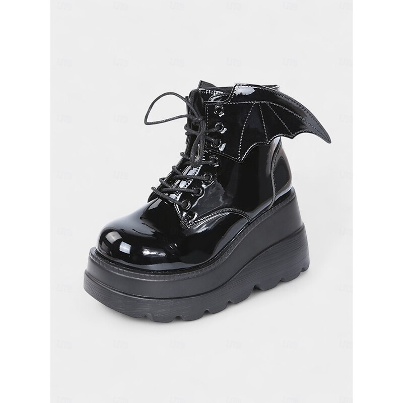 $34.99 - Women's Black Patent Leather Platform Ankle Boots - Bat Wing Lace-Up Gothic Punk Shoes, Chunky Heel Cosplay Boots for Halloween, Parties, and Alternative Fashion Outfits 2025. Shop for cheap Shoes For Women online? Buy at lightinthebox.com on sale today!