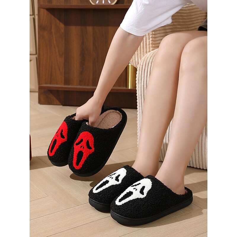 Why Choose Women's Halloween Horror Face Plush Slippers – Cozy Furry Indoor Shoes with Spooky Ghost Design for Winter Comfort?