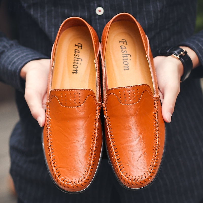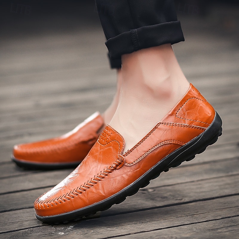 Why Choose Men's Tan Loafers with Stitched Detailing and cushy Sole - Casual, Comfortable, Ideal for Everyday Wear and Outdoor Activities?