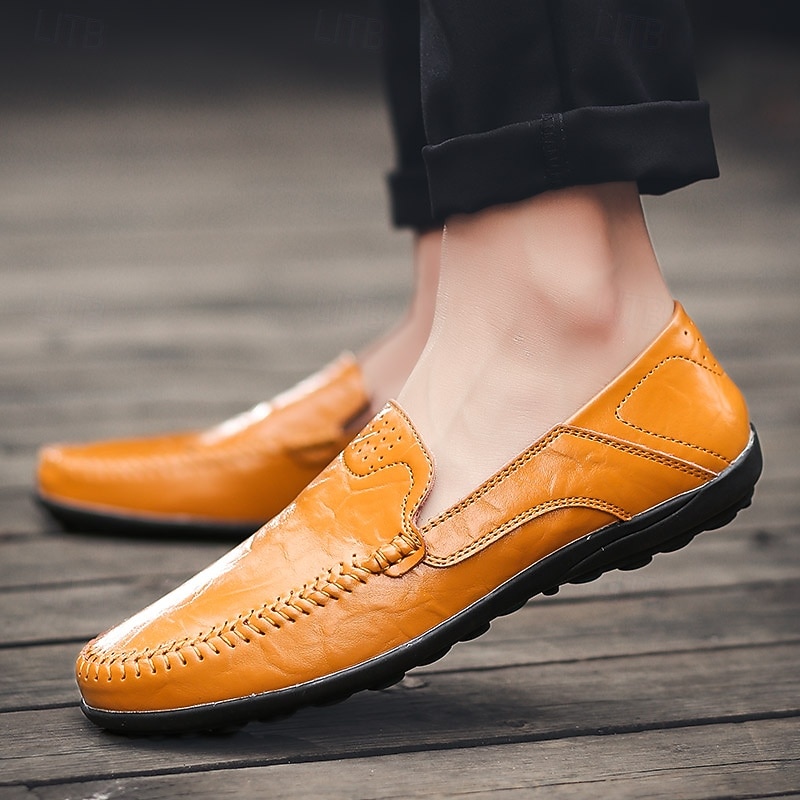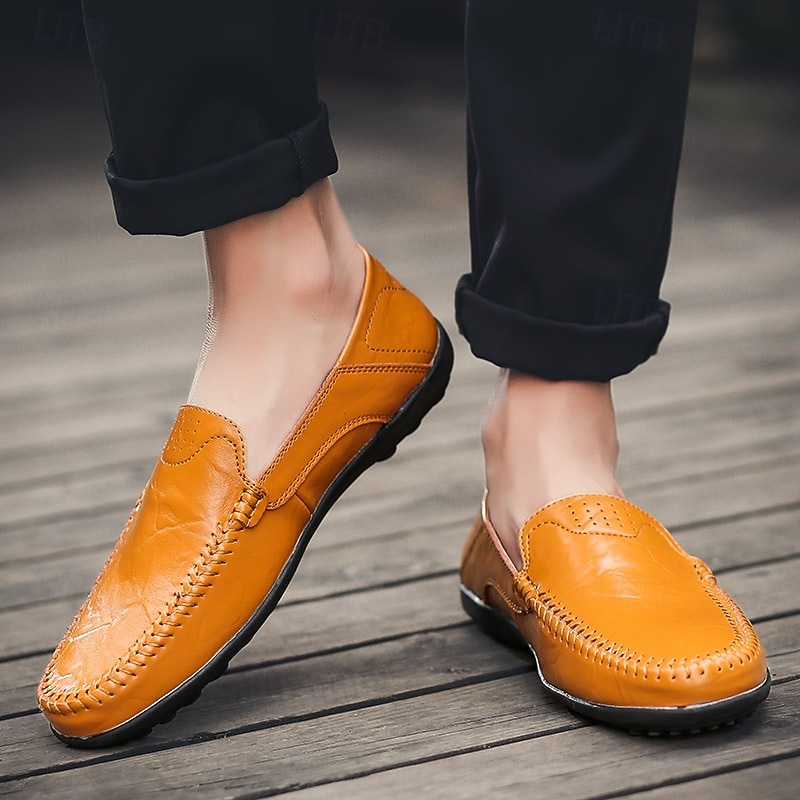 This Men's Tan Loafers with Stitched Detailing and cushy Sole - Casual, Comfortable, Ideal for Everyday Wear and Outdoor Activities combines elegant design with practical functionality. Every detail has been carefully considered to ensure you get the best possible experience. The finest construction means this product will serve you well for years to come.