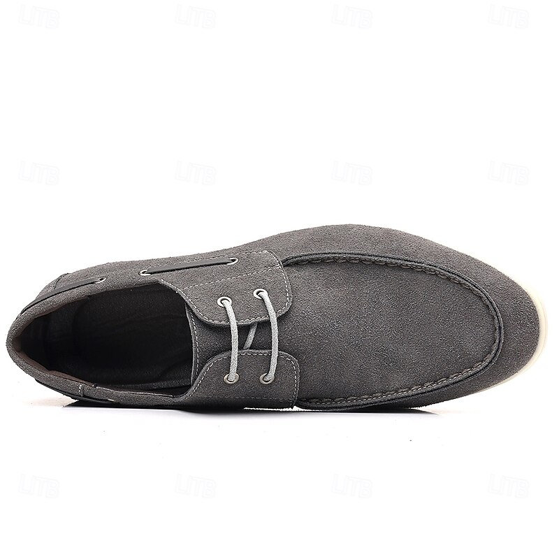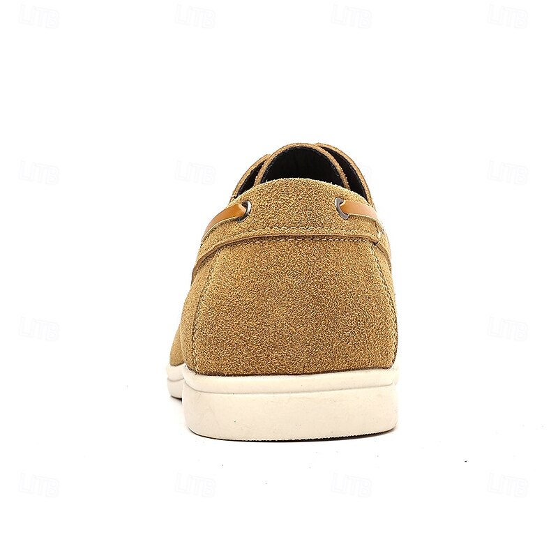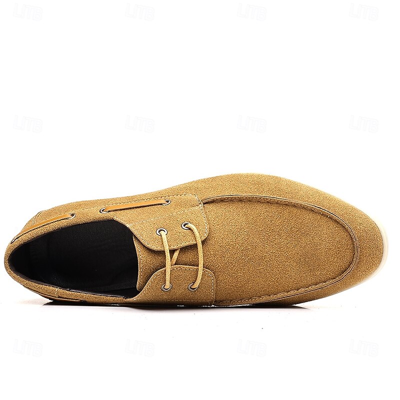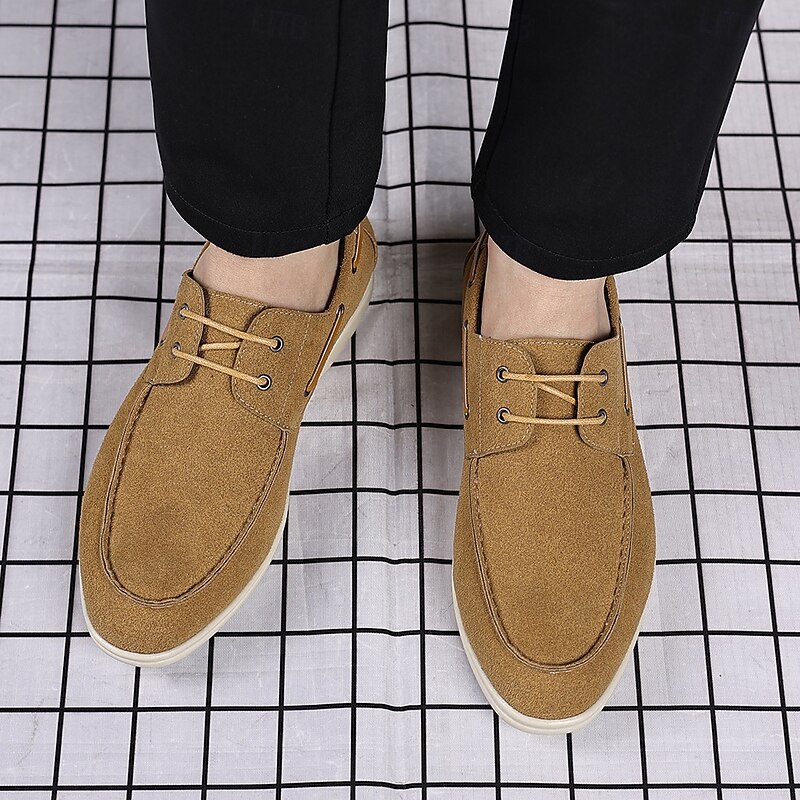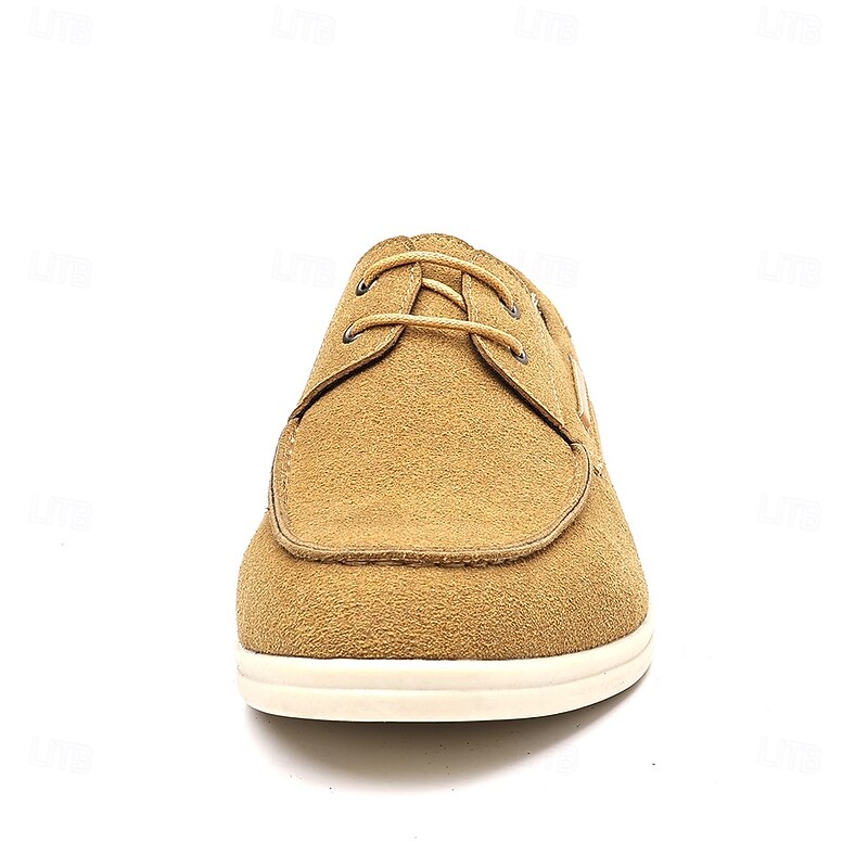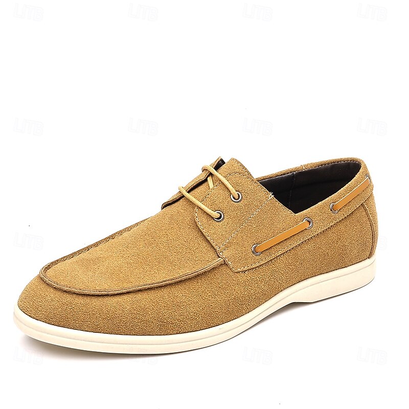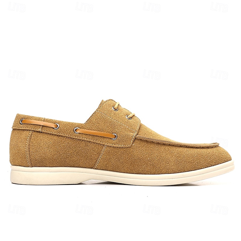 trending ! Men's Beige Faux Suede Boat Shoes with Lace-Up Design – cozy Casual Footwear for Weekend, Vacation & Daily Use