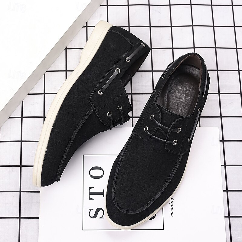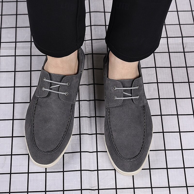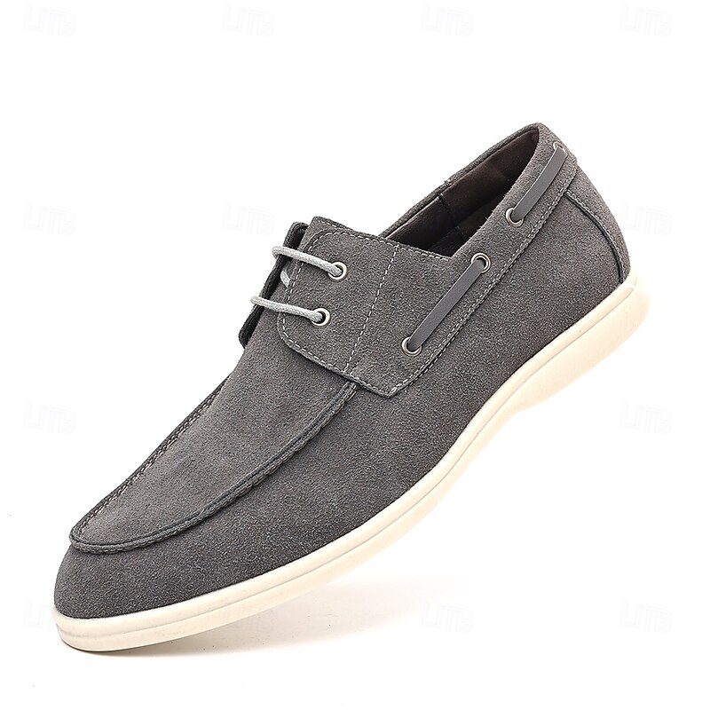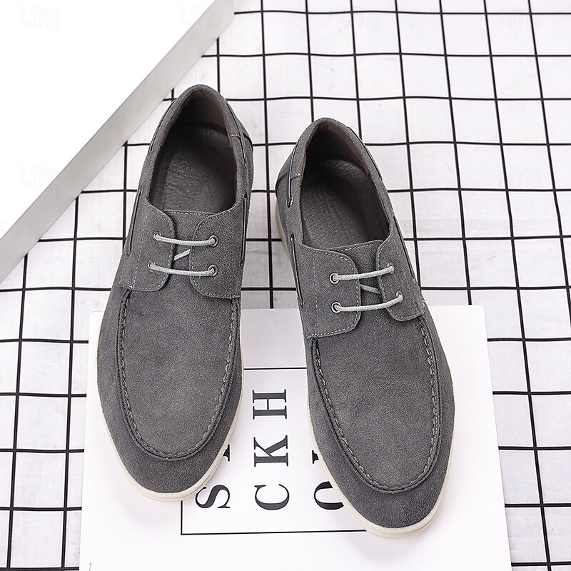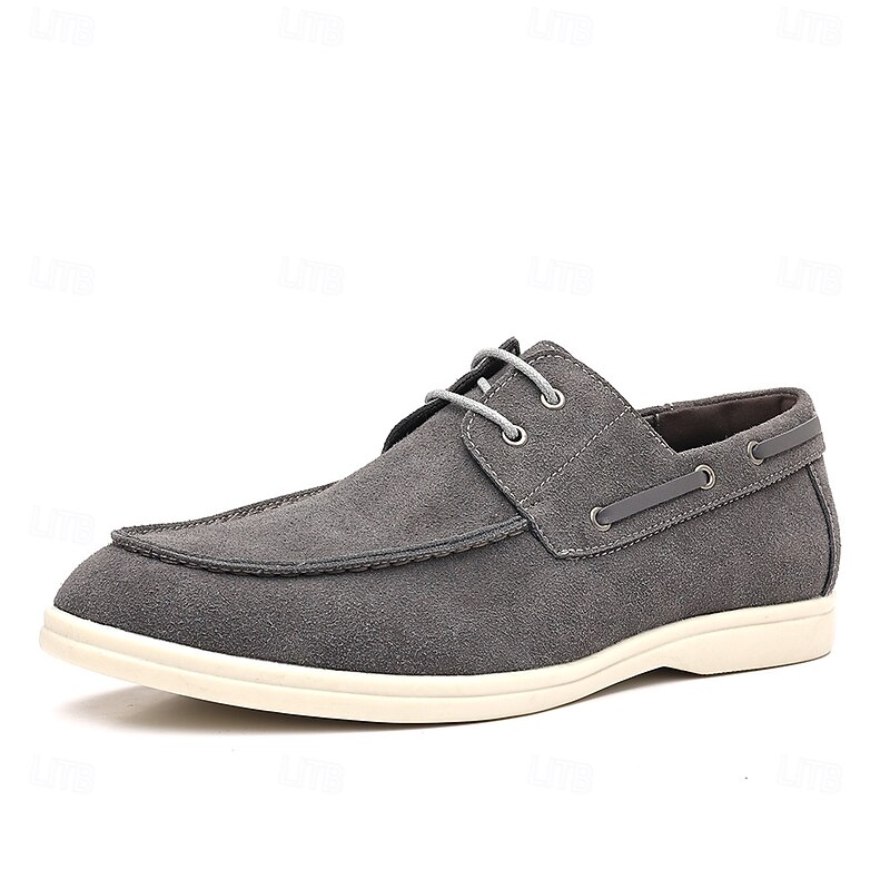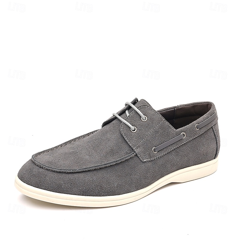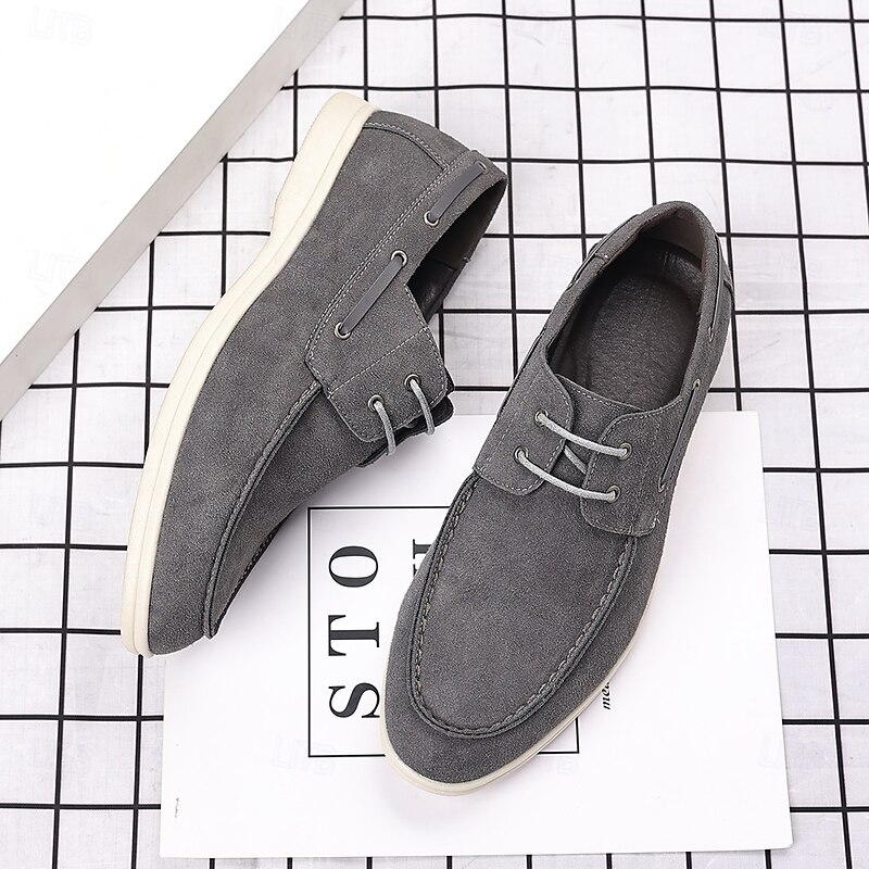 trending ! Men's Beige Faux Suede Boat Shoes with Lace-Up Design – cozy Casual Footwear for Weekend, Vacation & Daily Use
