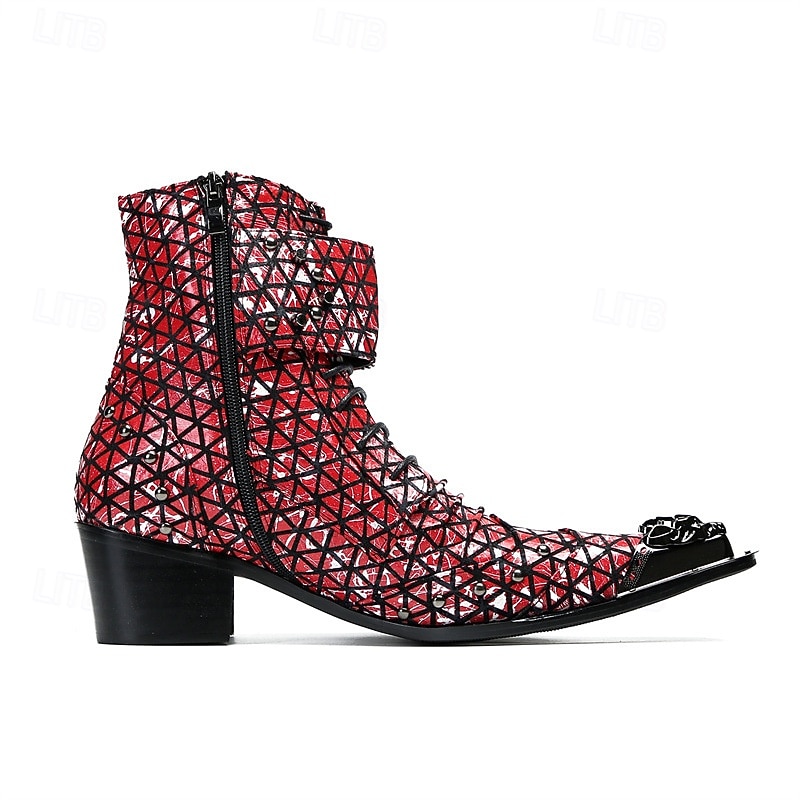 This Men's Red Genuine Leather Punk Ankle Boots with Geometric Pattern and Double Buckle Straps, 100% Cowhide Western Style Boots for Stage and Nightclub Fashion combines elegant design with practical functionality. Every detail has been carefully considered to ensure you get the premier possible experience. The supreme construction means this product will serve you well for years to come.