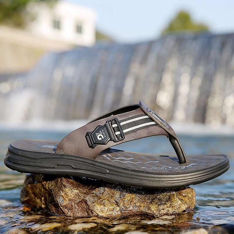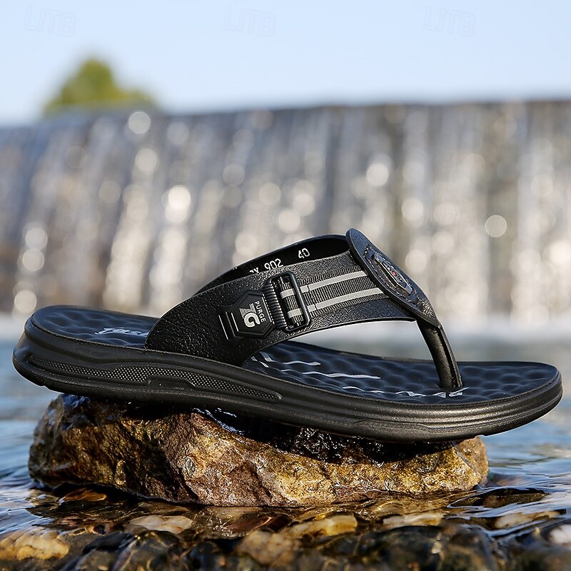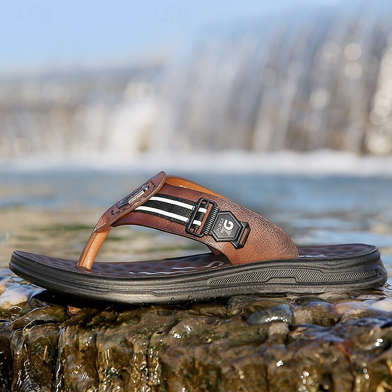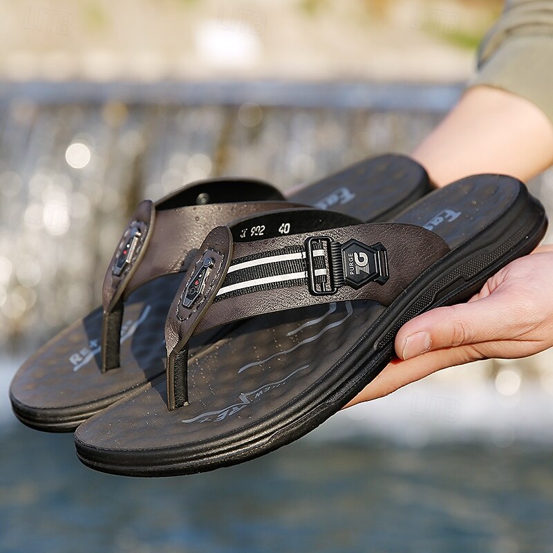 This Men's Faux Leather Thong Sandals with Contrast Webbing Strap, Slip-Resistant Flip-Flops for Beach Holidays, Poolside Relaxation and Summer Walking combines elegant design with practical functionality. Every detail has been carefully considered to ensure you get the foremost possible experience. The top-grade construction means this product will serve you well for years to come.