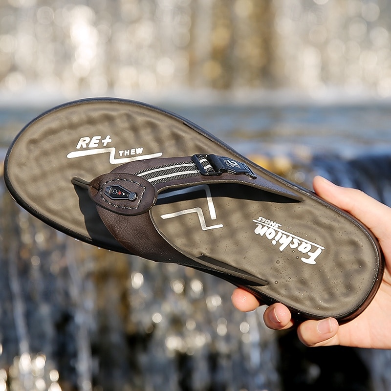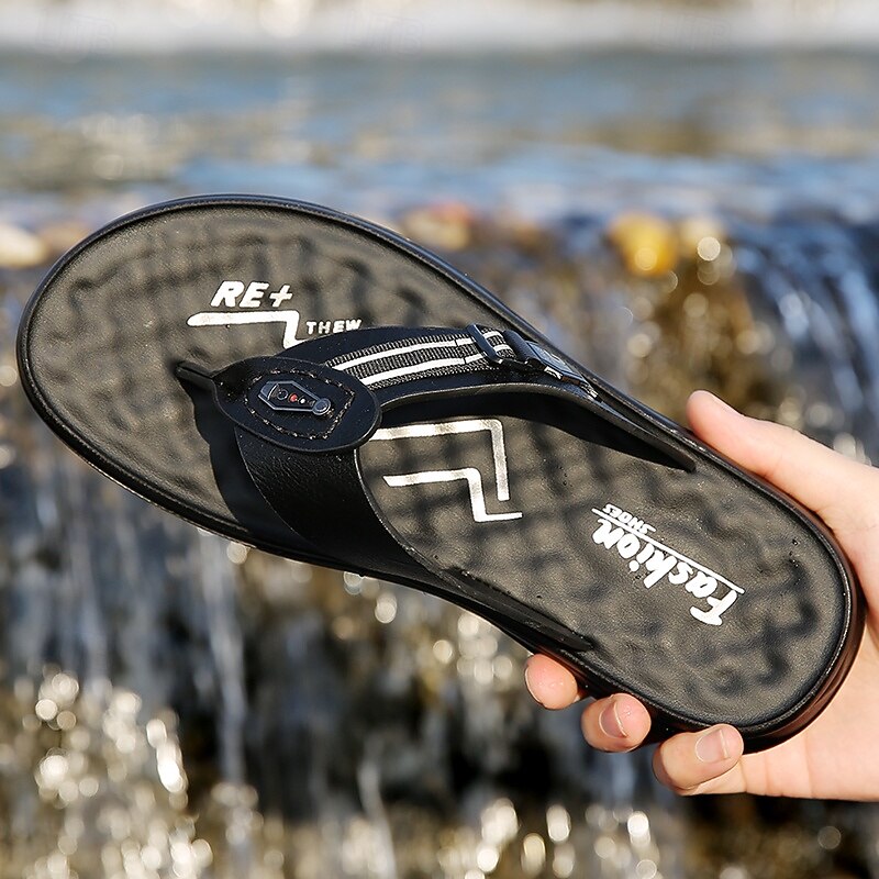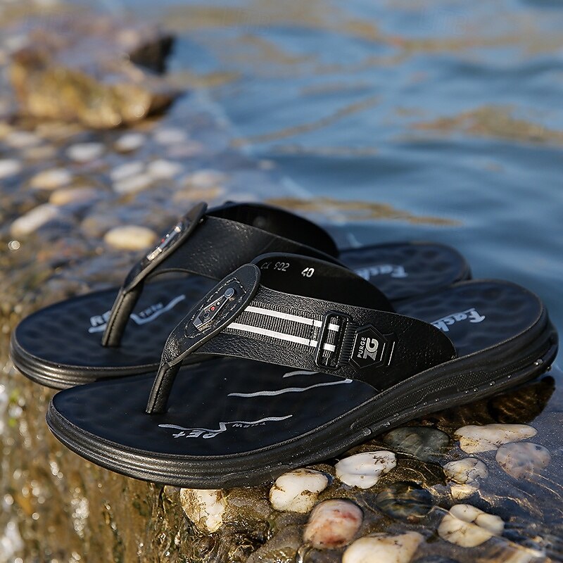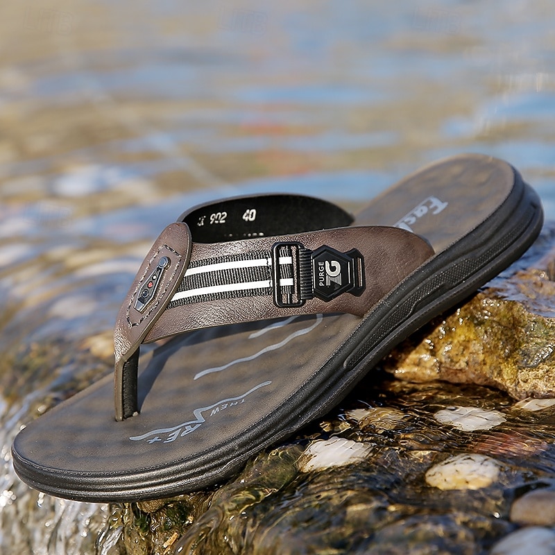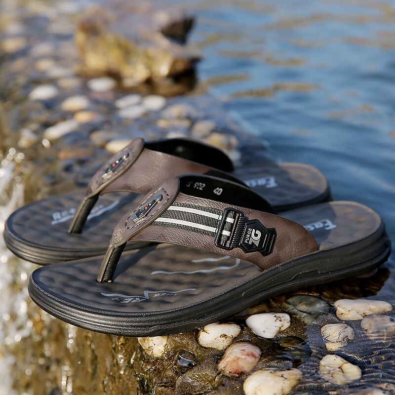 Why Choose Men's Faux Leather Thong Sandals with Contrast Webbing Strap, Slip-Resistant Flip-Flops for Beach Holidays, Poolside Relaxation and Summer Walking?