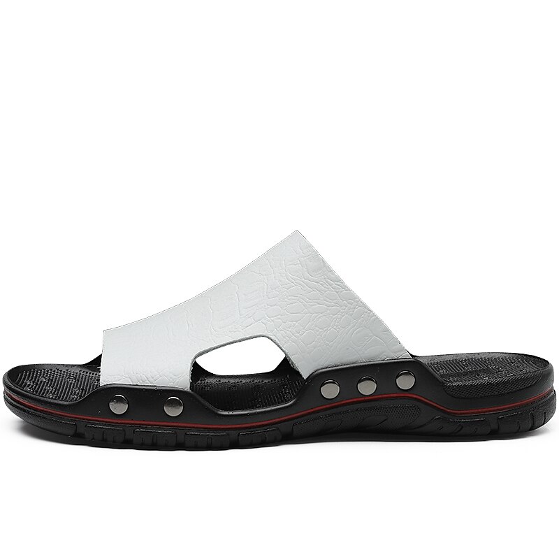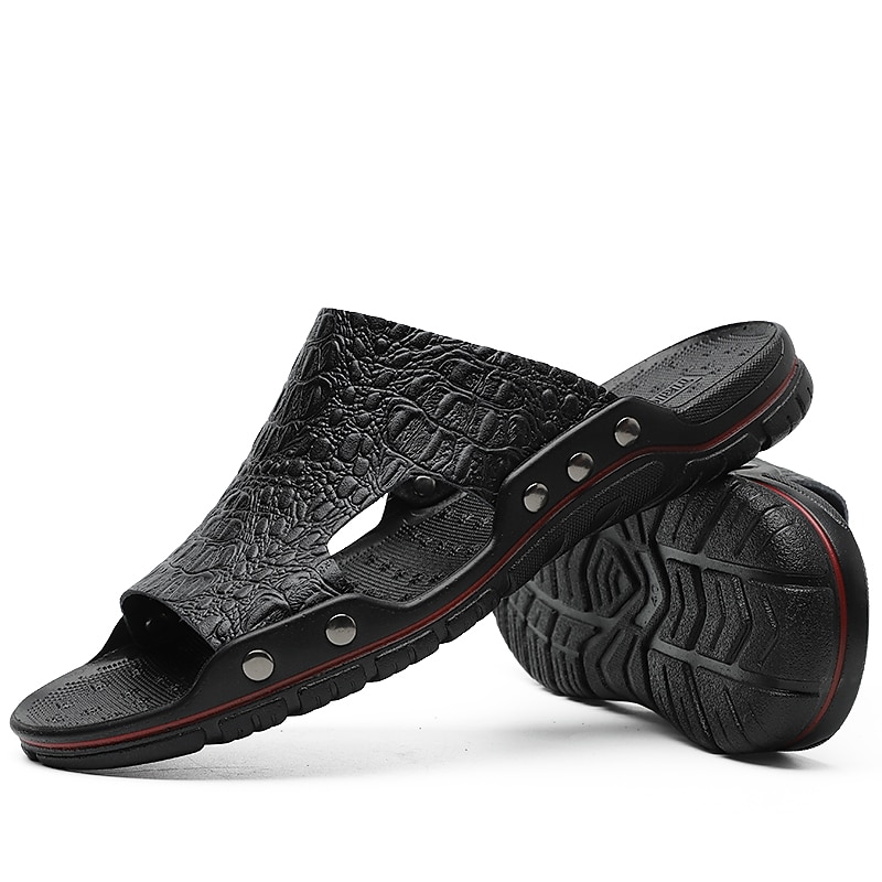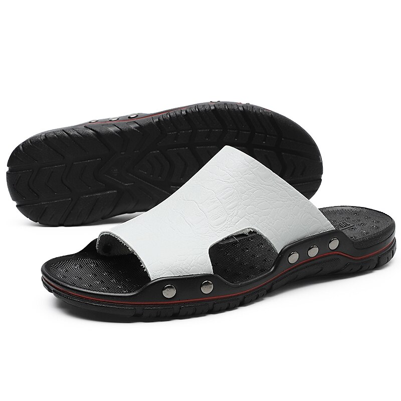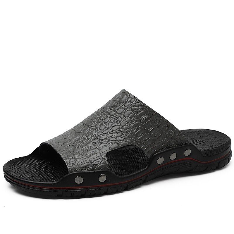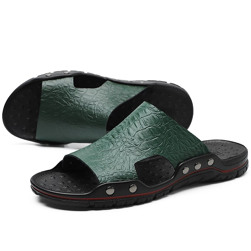 Men's Casual Open-Toe Slides – cushy Breathable Leather Sandals with sturdy Rubber Sole, Ideal for Outdoor, Beach, and Everyday Wear