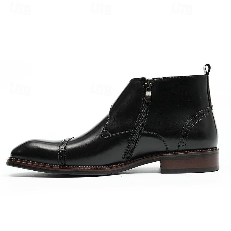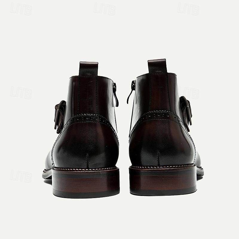 Why Choose Men's Premium Leather Buckle Ankle Boots - 100% Cowhide Zipper and Brogue Detailing for Formal and Casual Wear?