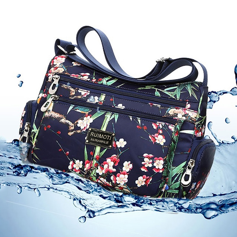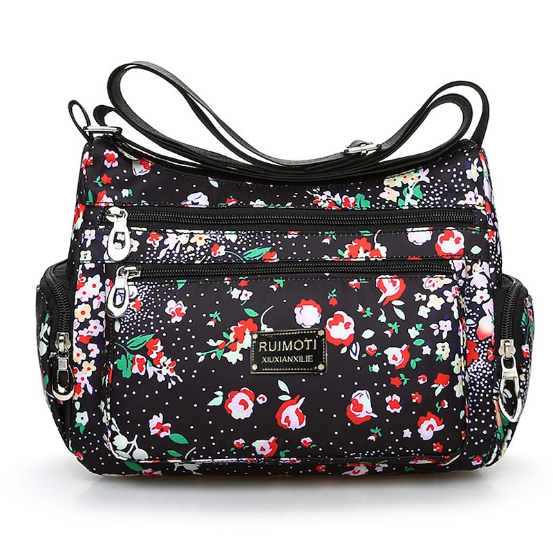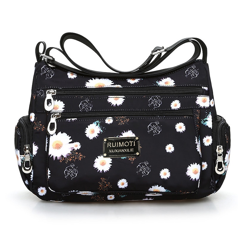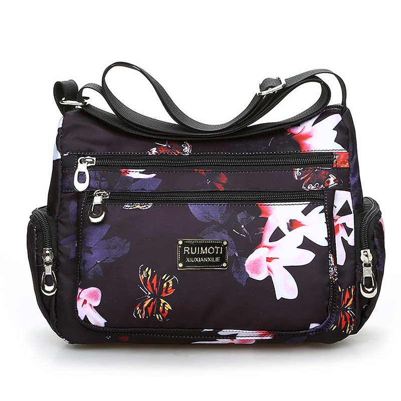 More information about Women's Crossbody Bag Crossbody Bag Nylon Outdoor Daily Going out Print Waterproof Floral Print Flower Black Grey Black White