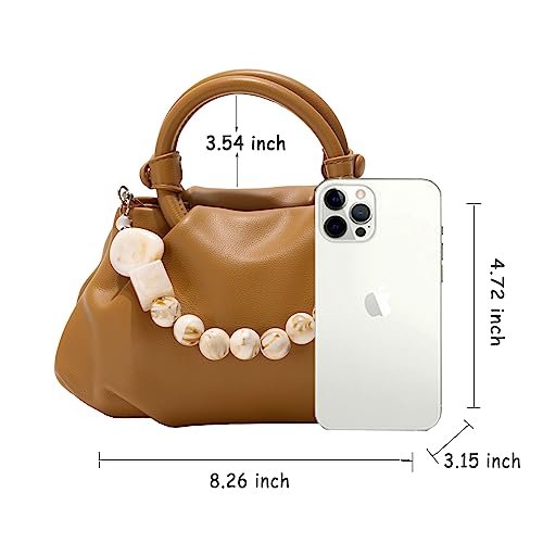 • Beaded Shoulder Bag: this cloud bag is crafted in tender ruched pu leather, come with a acrylic beaded (can be remove), you can use the adjustable and removable shoulder strap as a small crossbody purse