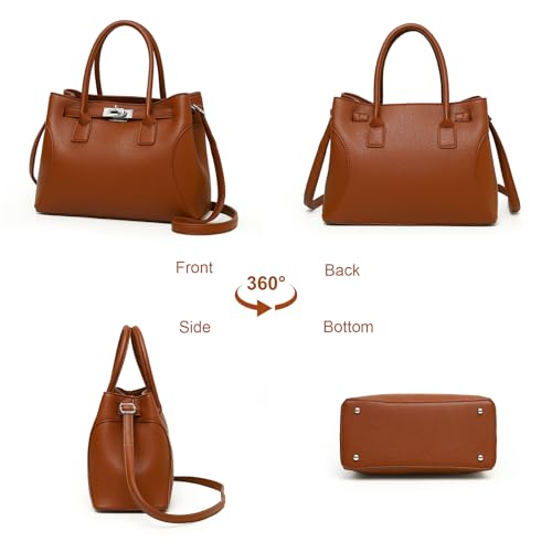 Origin: ImportedClosure type: ZipperLining: PolyesterItem Display Dimensions: 12.2 x 5.9 x 8.7 inches[PRUMIEM MATERIAL] This women satchel handbag is made of soft vegan leather which is water-resistant and easy to clean. The twist lock, the zip puller and the bottom rivets all are made of shiny heavy-duty silver-tone hardware. The stitch is consistent. The fixed bottom makes this women's handbags and purses always keep in shape that it will keep you elegant anytime.[TRENDY DESIGN] This women shoulder purse is designed exquisite. The smooth rolled leather top handles are very snug to hold in hand or hang on elbow. There is a belt through the bag each side to help the bag closed well. The neutral color leather combined with the shining silver color hardware makes the entire bag looks expensive.[MULTIPLE POCKETS] This fashion hobo bag for women has lots of pockets to keep your daily essentials well organized and accessible. There are 3 main compartments with the middle is a zipper pocket. And there is 1 small zip pocket and 1 slip pockets inside for small items and valuables. This satchel tote bag comes with a removable and adjustable strap which allows you to carry it as a shoulder bag or crossbody bag.[MEDIUM SIZE] The dimension of this top-handle purse for women is 12.2’’L x 5.9’’W x 8.7’’H. It is not bulky, but not too small, provides spacious storage room you need and more, like a full size wallet, cell phone, make-up, glassed, umbrella, etc.. Perfect for everyday use, working, shopping, dating, traveling, vacation.[OCCASION] This medium cross body hobo bag is well made. The solid color and minimalist appearance make it a versatile accessory in daily life. You could pair it with casual outfits like jeans and a blazer for a chic, everyday look. Also it could be matched with a formal suit for working or dress for event. It is a nice and practical gift for mother, wife and friends on their birthday, Mother’s day, Thanksgiving Day, Christmas Day and New Year. Perfect for everyday use. superior materials and excellent craftsmanship ensure long-lasting durability.