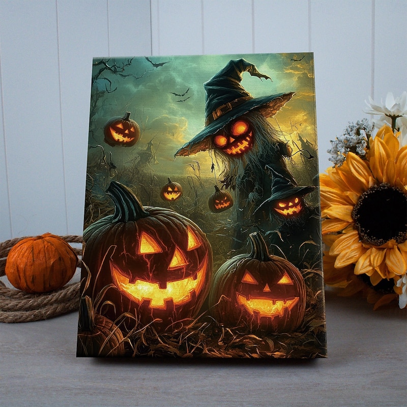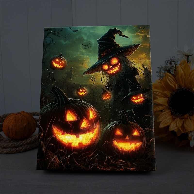 $35.99 - Halloween Flying Witch and Pumpkins LED Canvas Wall Art - Battery Operated Lighted Wall Decor for 2025 Halloween home decoration light livingroom and bedroom 2025. Shop for cheap Halloween Wall Tapestries online? Buy at lightinthebox.com on sale today!