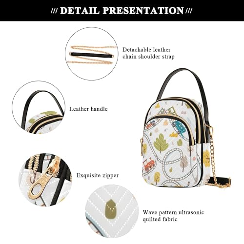 Shoulder Handbag Women Quilted Phone Purse Chain Strap Handbag Fun Designer Satchel Crossbody Bag Cute Cartoon Trains Tracks Beige