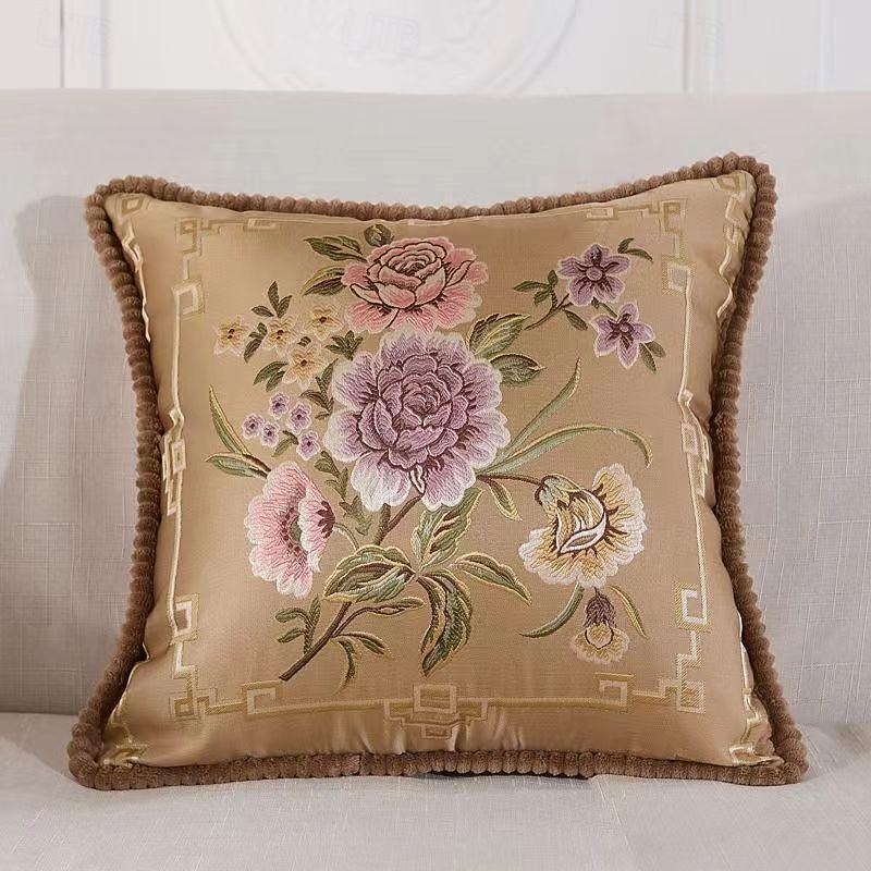 Why Choose Floral Pattern Pillowslip Embroidery Pattern Car Interior Ornaments Silk Satin Sofa Couch Cushion Cover for Living Room?
