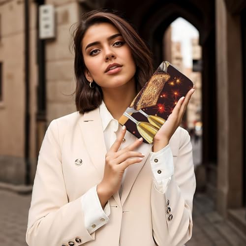 Toast To Your Birthday Leather Wallet For Women Girl, Zip Around Credit Card Holder Long Pu Wallet Clutch Purse Waterproof Travel Handbag