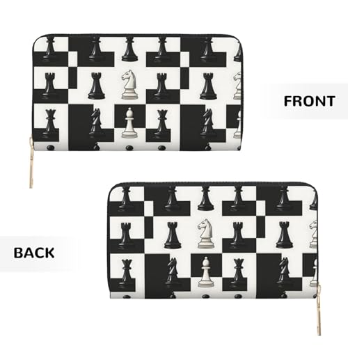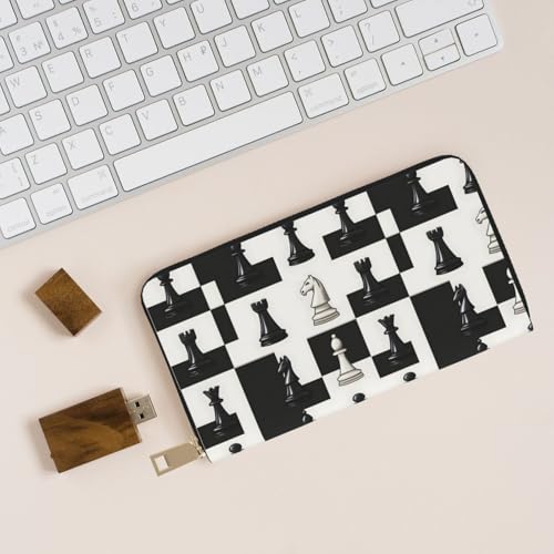 trending ! Leather Thin Slim Wallets for Women & Men - Chess Black White Print Card Wallet Holder with Zipper