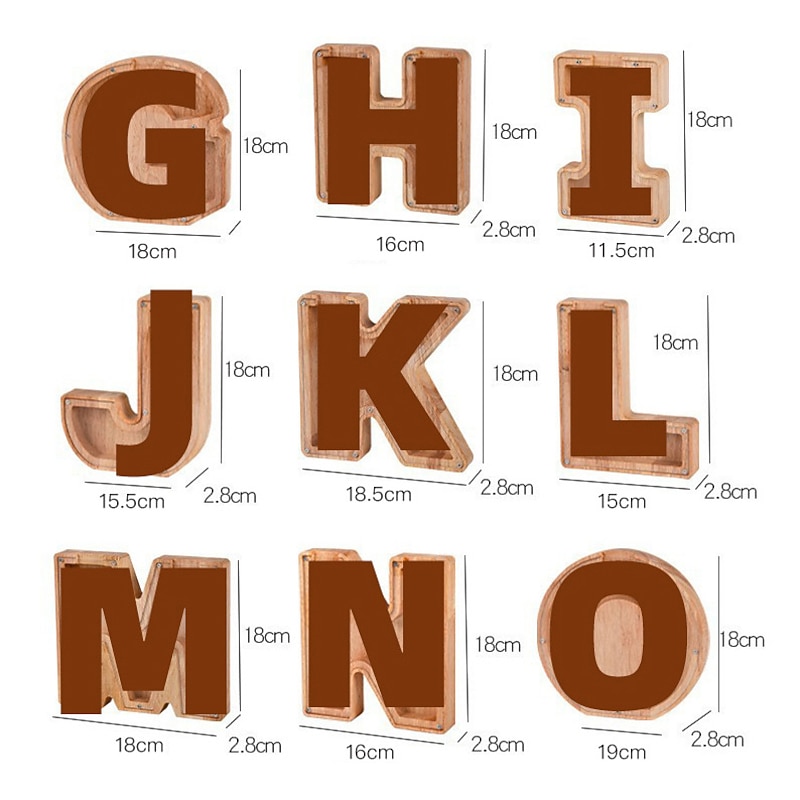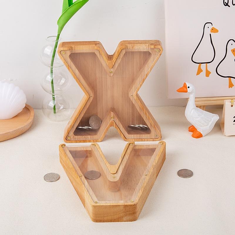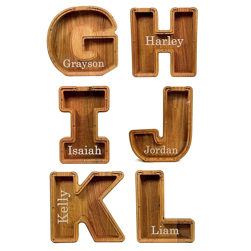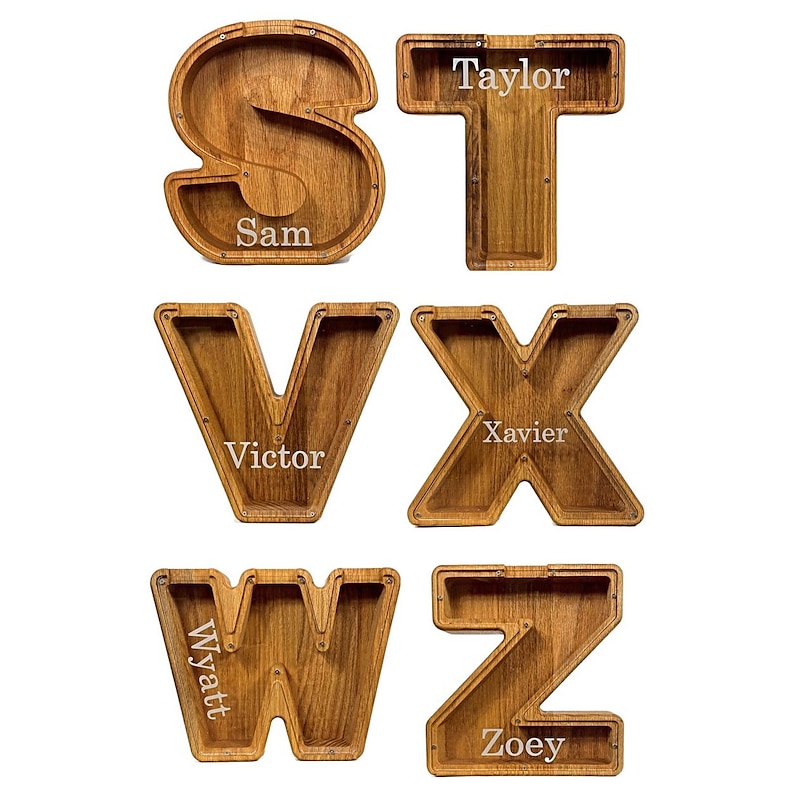 Highlights - Personalized Wooden Letter Piggy Bank: Made of walnut and acrylic, ensuring safety and durability. - Cute and exquisite Design: The letters have adorable shapes with a stunning appearance, providing a larger capacity and a more textured feel compared to other products in the market. - Educational Toy: Suitable for both boys and girls of any age, this wooden letter piggy bank encourages savings awareness as children can watch their savings grow through the clear acrylic. - Convenient to Open: Simply unscrew a few screws, remove the acrylic, take out the coins, and easily put it back together for continued use. - Perfect Gift: Whether as a birthday present or for Christmas, the Wooden Letter Piggy Bank is an ideal choice for both adults and kids. Perfect for everyday use. superior materials and excellent craftsmanship ensure long-lasting durability.