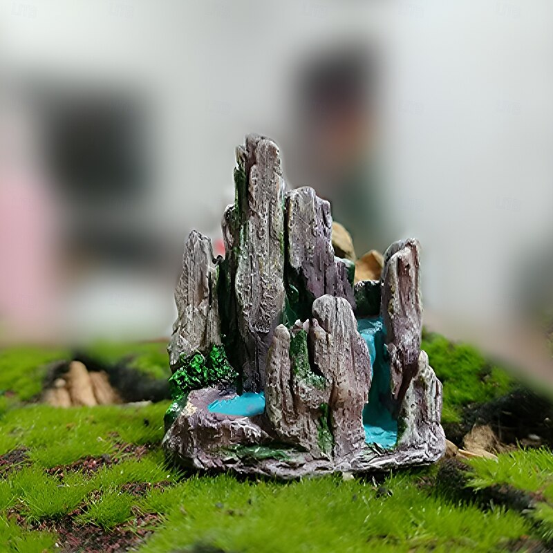 trending ! Resin Rockery Water Fountain Decoration, Realistic Mini Landscape Waterfall Ornament for Fish Pond, Aquarium Eco Tank Decor Sculpture