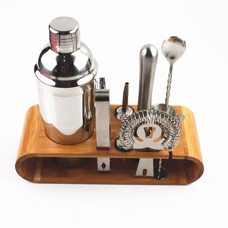 trending ! Cocktail Shaker Set Bartender Kit with Stand 10pcs Cocktail Shaker Mixer Stainless Steel 550ml Bar Tool Set with fashionable Bamboo Stand outstanding Home Bartending Kit and Martini Cocktail Shaker Set