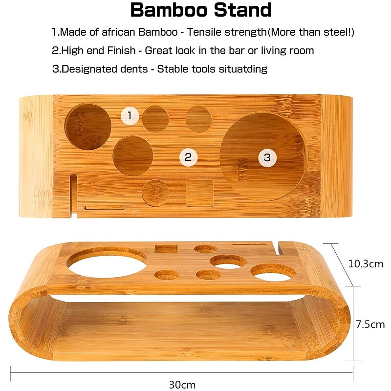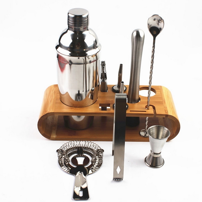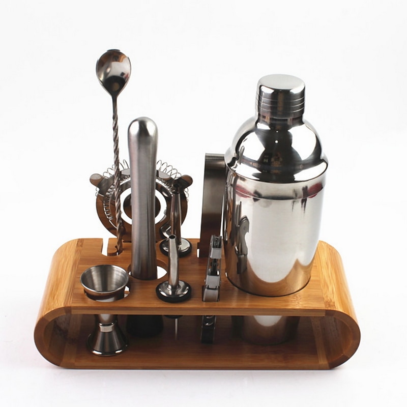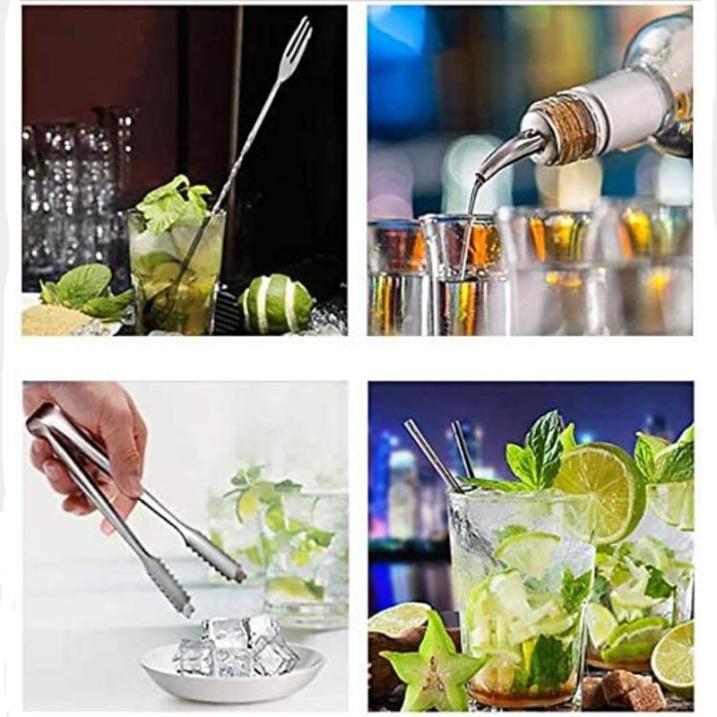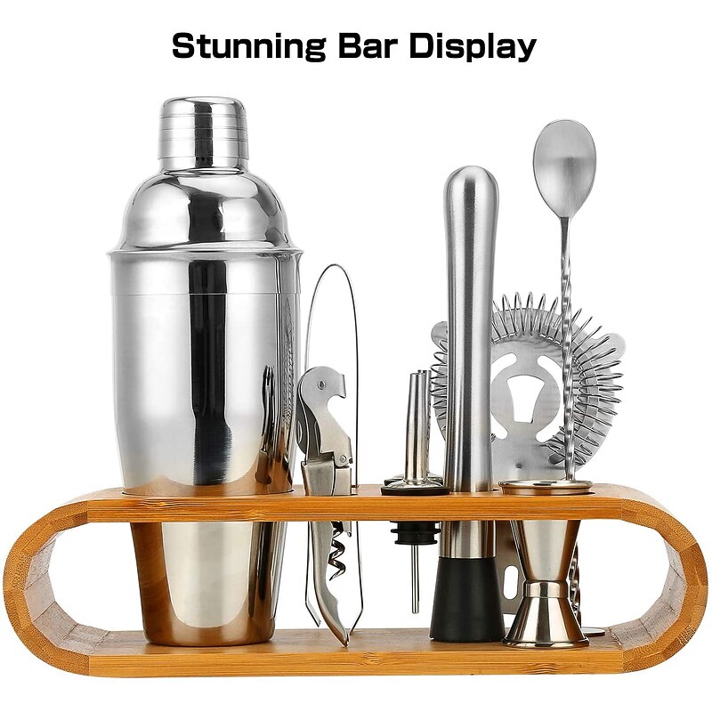 Highlights - Complete set of bar tools, including a rustproof 18 oz cocktail shaker, double sided Jigger, mojito muddler, mixing spoon, Hawthorne strainer, liquor pourers, ice tongs, and a double lever corkscrew. - The double lever corkscrew is easy to use with a two-step lever action that effortlessly removes corks from bottles. - Comes with a contemporary bamboo wood stand that keeps all the bar tools neatly organized and easily accessible. - superb for home bartenders or professionals, this set has everything needed to make cocktails like a pro. - Designed to last, all the items in the set are made of high-quality materials and are built to withstand frequent use. - An excellent gift for anyone who loves mixing drinks or entertaining guests, this set is sure to be appreciated and used for years to come.