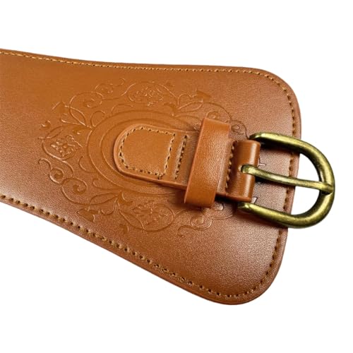 trending ! Women Ladies Vintage Wide Faux Leather Totem Print Elastic Stretchy Corset Cinch Belt