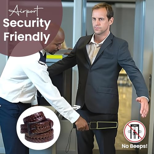 Fabric type: 100% LeatherCare instructions: Dry Cloth CleanOrigin: Imported𝗦𝗧𝗬𝗟𝗜𝗦𝗛 𝗗𝗘𝗦𝗜𝗚𝗡: This braided leather belt men love features an elegant woven design, adding a sophisticated touch to any outfit. Whether you're dressing up for work or going casual, this mens braided belt blends style and functionality.𝗣𝗥𝗘𝗠𝗜𝗨𝗠 𝗟𝗘𝗔𝗧𝗛𝗘𝗥 & HYPOALLERGENIC: Made from genuine full-grain leather, this mens braided leather belt is designed for exceptional durability and comfort. The soft yet sturdy leather resists wear and tear, ensuring long-lasting performance without cracking or peeling this hypoallergenic metal free belt keeps you irritation-free while maintaining a polished look𝐌𝐄𝐓𝐀𝐋 𝐅𝐑𝐄𝐄 & 𝐓𝐒𝐀 𝐅𝐑𝐈𝐄𝐍𝐃𝐋𝐘: Designed with a hypoallergenic, metal-free buckle, this TSA-friendly belt is perfect for those with metal or nickel allergies, preventing belly rash and skin irritation. Effortlessly pass through airport security without hassle.𝗣𝗘𝗥𝗙𝗘𝗖𝗧 𝟭 𝟭/𝟴” 𝗪𝗜𝗗𝗧𝗛: Designed with a 1 1/8-inch width, this braided belt men and women love is perfect for jeans, chinos, and dress pants. The sleek size balances style and functionality, making it a perfect braided brown belt women and men can wear for work, casual outings, or special occasions.𝗣𝗘𝗥𝗙𝗘𝗖𝗧 𝗚𝗜𝗙𝗧 𝗙𝗢𝗥 𝗔𝗡𝗬 𝗢𝗖𝗖𝗔𝗦𝗜𝗢𝗡: Looking for a fashionable and practical gift? This braided leather belt men love makes an excellent gift for husbands, fathers, brothers, and friends. Whether it’s for a birthday, anniversary, Father's Day, or holiday, this mens braided leather belt is a timeless and thoughtful present Perfect for everyday use. premium materials and excellent craftsmanship ensure long-lasting durability.