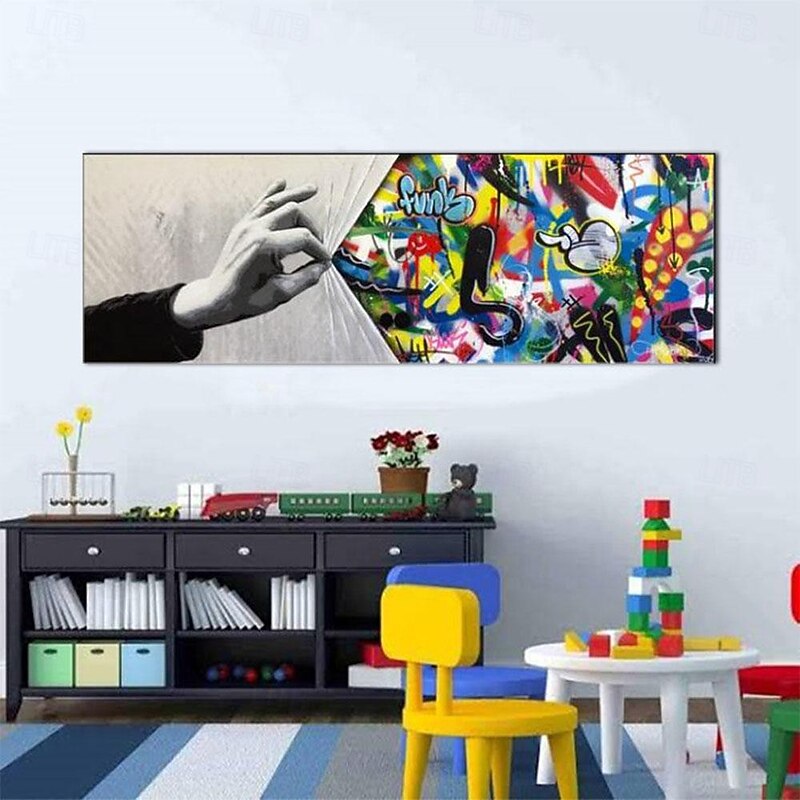 $108.99 - Handmade Hand Painted Wall Art Behind the Curtain Kid graffiti art Banksy Wall Art Urban Style Canvas Decor Rolled Canvas No Frame Unstretched 2025. Shop for cheap POP Oil Paintings online? Buy at lightinthebox.com on sale today!