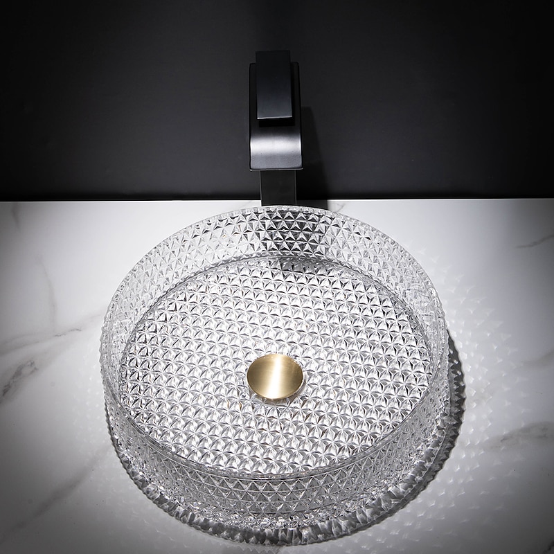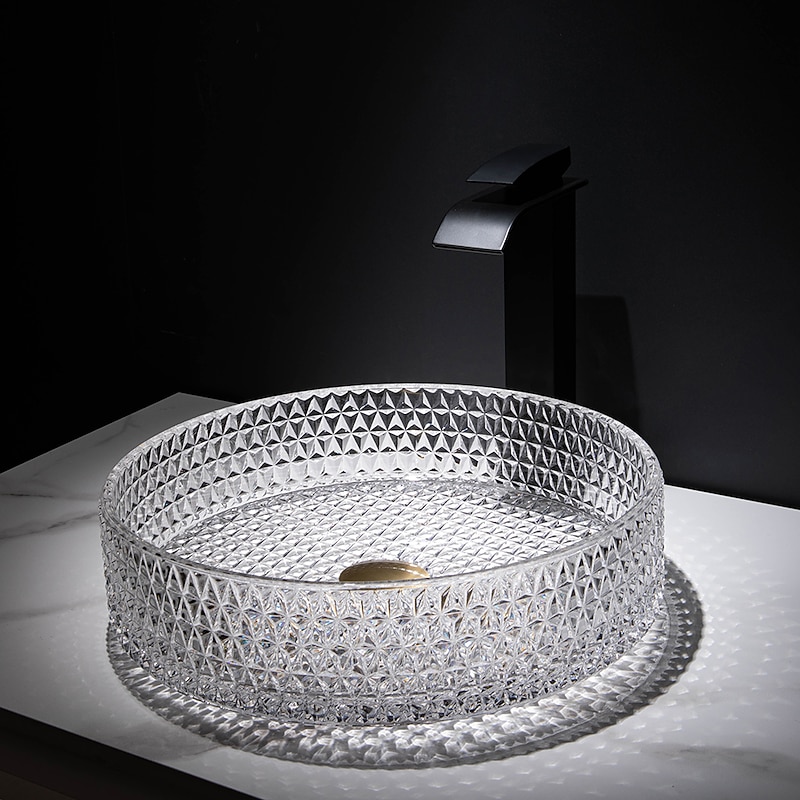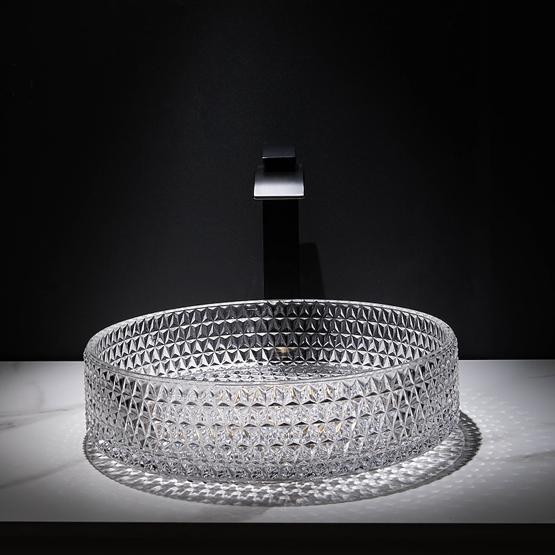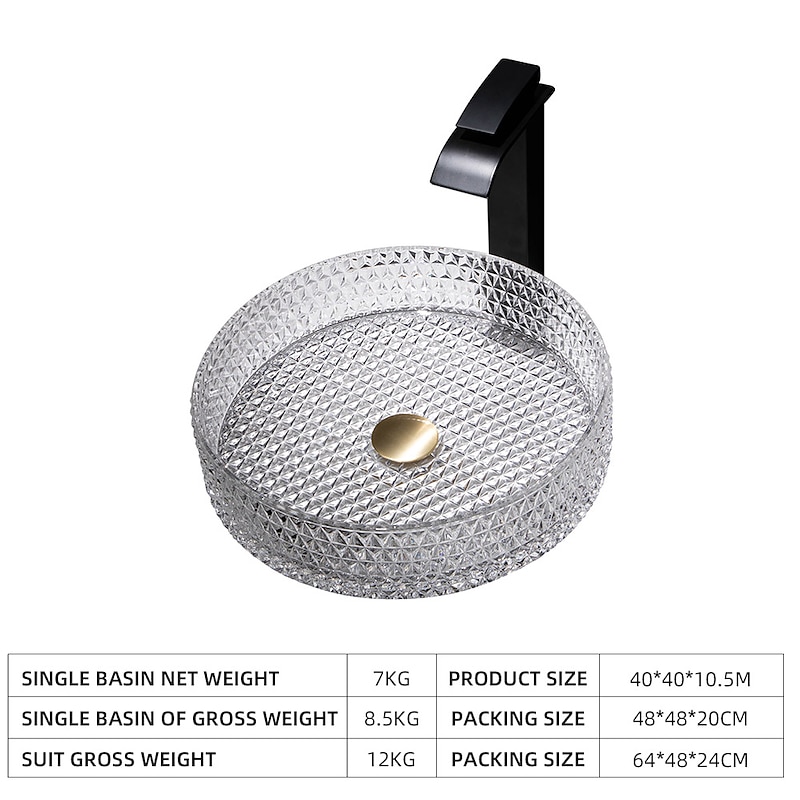 Highlights ★ first-class: The creative bathroom sink is made of sturdy tempered glass and advanced die-casting technology. 12MM thick tempered glass, impact resistance, drop resistance, safety and durability. The matching faucet can adjust the cooling, heating and water output ★ High value: Advanced transparent crystal design, instantly update any space. The smooth touch brings you a comfortable feeling, and the creative artistic design adds charm to your bathroom. ★ Easy to install: The design of the table top makes it easy to install and maintain, saving installation costs. The smooth surface is easy to clean. Great gift ideas for everyone ★ Wide application: The present-day and fashionable design is suitable for most families, hotels, restaurants, shopping malls and bars, and can be used in bathrooms, toilets, dressing rooms, etc.